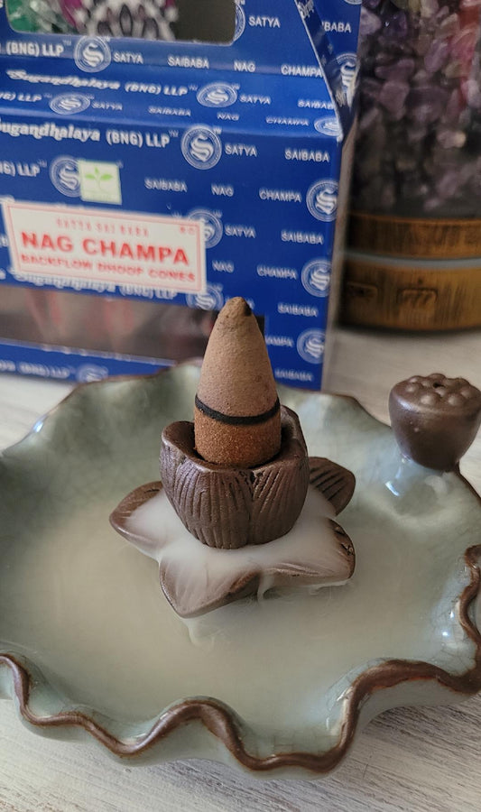 Ceramic Backflow Burner + Incense Holder - Ivory Cliff